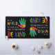 This colourful design has a simple and a powerful message that says "In a world where you can be anything be kind" The typography is modern and in multiple colours to represent all humanity