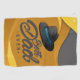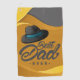 A yellow and grey towel with a hat and Best Dad