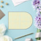 a yellow and white background with small circles acrylic invitations