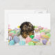 A Yorkie-poo puppy and Easter eggs. Holiday Postcard