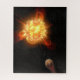 Illustration of a young red dwarf stripping the atmosphere from an orbiting planet. Violent outbursts of seething gas from young red dwarf stars may make conditions uninhabitable on fledgling planets.