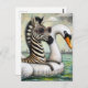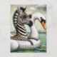 An adorable zebra vacations in a cute floating swan as it chills on a river a mixed media style AI generated collage