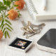 The product itself self is absolutely lovely and a smart finish. I'm so pleased with it and think the recipient will be very pleased too! The writing is small so not very clear but that's fine the picture is the main focus anyway and Is really good quality.