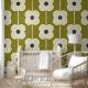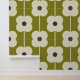 Abacus Flower Lined Eyelet Olive and Blue Wallpaper