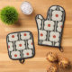 Abacus Flower Tomato Red Grid Pattern Oven Mitt & Pot Holder Set