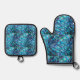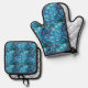 Abalone blue green oven mitt and pot holder. Matching apron is available.