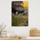 Abandoned old car in tall grass poster
