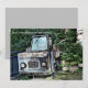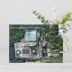 Invitation on Old car exhibition. Old abandoned and rusted empty truck on dump.