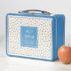 A colourful, retro Alphabet design on a vintage / retro - style lunch box that can be personalised with your child’s name. Text can be added to the front with the Teacher, School grade or other message. Inspired by retro typefaces and boho design, this cover can be personalised with a name, monogram, or other text. Gender-neutral colours; purple, green, orange, yellow, teal, turquoise, grey, brown, cream.