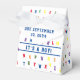 Design features a background of the alphabet in bright, colourful stencil-lettering just like that of the refrigerator magnets we all know! The phrase, "IT'S A BOY!" is displayed in blue lettering across middle of design front. Top flap tells everyone when Baby is due. When opened, Baby's name is revealed in same blue lettering. Perfect for an ABC themed Baby Shower! Designed to coordinate with the "ABC Baby Shower collection."