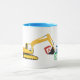 Learning the alphabet with construction trucks is always fun. A cute illustration of a toy excavator carrying and moving colourful ABC alphabet blocks. Ideal Christmas present, birthday gift, nursery decor, kids room art, home decor or back to school.