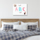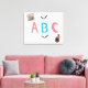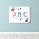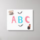 This wrapped canvas depicts an early reader's ABC along with pictures of an antelope, birds, and a cat.