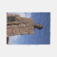 A fleece blanket featuring a photo of an Abe Lincoln monument located in Wyoming.