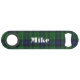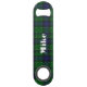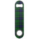 Custom speed bottle opener done in the classic blue, green, black, and white Scottish Abercrombie clan tartan pattern. Personalise the bold white text, on the front, for yourself or as a great little gift idea for him.