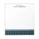 Personalised note pad with a border of the family tartan of Clan Abercrombie, a traditional royal blue, black, and green Scottish plaid pattern from 1805.