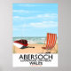 Abersoch Llanengan in Gwynedd, Wales seaside resort vintage style beach welsh vacation summer holiday travel poster.