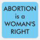 Abortion Is A Woman's Right black text on sky blue Square Sticker