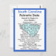 Good quality postcard, fun format for the information. My daughter is studying SC history at school, and this is a great supplement. Great weight of paper, nice, clear printing.