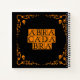 An ancient, arcane incantation or spell performed for protection. The magic word in vivid orange, in a spooky font with bats and a border with skulls for Halloween
