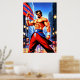 Colourful art of Abraham Lincoln as a fighter standing in the street of the city. This is a AI generated art.