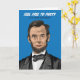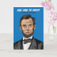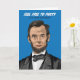 A political themed birthday card featuring US President Abraham Lincoln on a blue background with the message "Feel free to party. It's your birthday!