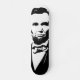 This skateboard features a black and white pop art style image of U.S. President Abraham Lincoln.