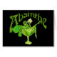 A green fairy inside a glass of absinthe kicks up her heels and brandishes a sugar cube.