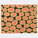 A hand painted abstract design made up of oval shapes with orange centres and edged in amber on a black background. The design is painted in digital oil paint with a slight impasto effect giving a brushy oil painted look.