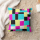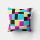 An original abstract design made up of irregular rectangles and squares in pink, yellow, cyan blue, and black.