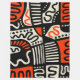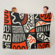 A bold original hand drawn abstract design in black, orange red, and cream.