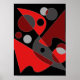 Decorative abstract geometric design in reds, greys and black, by Ron Trickett