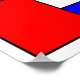 Digital abstract design in the style of Piet Mondrian. Mondriaan. Blue. Red. Yellow. White.