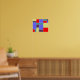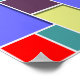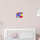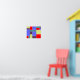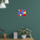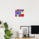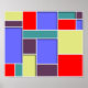 Digital abstract design using blue, red, green, yellow, and purple in the style of Piet Mondrian.