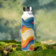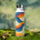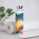 Abstract 70s Retro Orange Blue Wavy Stripe Pattern Water Bottle
