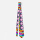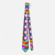This tie has a geometric design of concentric half-circles of several retro colors.