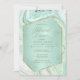 You get both glamour and high impact with this coordinating wedding set that features abstract agate patterns, textured with faux-crystals and highlights in glittering faux gold foil. Striking colour combinations, like this suite with it's soft pastel palette from mint green to teal blue, create the background for the pieces in this coordinated collection. This elegant rehearsal dinner invitation features all the above with a hexagon, semi-transparent label in mint green to hold your text. A template is provided to easily add your event details. View the collection link on this page to see all of the matching items in this beautiful design or search ID827 to see additional colour choices for this design.