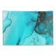 Vibrant abstract art in fresh turquoise summer colours. This turquoise pattern is printed in gold and turquoise with shades of teal, black and gold. Beautiful organic oceanic colours and swirls in trendy gold and turquoise. Alcohol ink original artwork by Pauline Benjes. Abstract Agate Turquoise Gold Pillow Case.