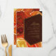 You get both glamour and high impact with this coordinating wedding set that features abstract agate patterns, textured with faux-crystals and highlights in glittering faux gold foil. Striking color combinations, like this collection with it's bold palette from hot orange to golden yellow create the background for the pieces in this coordinated collection. This wedding reception menu features all the above plus elegant calligraphy on a hexagon, semi-transparent chocolate brown label to hold your menu selections. A template is provided to easily add your menu details, initials and wedding date. View the collection link on this page to see all of the matching items in this beautiful design or search ID827 to see additional color choices for this design.