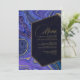 You get both glamour and high impact with this coordinating wedding set that features abstract agate patterns, textured with faux-crystals and highlights in glittering faux gold foil. Striking colour combinations, like this suite with it's night-sky palette from deep midnight blue to soft violet, create the background for the pieces in this coordinated collection. This wedding reception menu features all the above plus elegant calligraphy on a hexagon, semi-transparent label to hold your menu selections. A template is provided to easily add your menu details, initials and wedding date. View the collection link on this page to see all of the matching items in this beautiful design or search ID827 to see additional colour choices for this design.