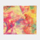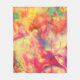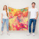 This fleece blanket has a beautiful abstract pattern in colours of orange, yellow, pink, blue-green and cream reminiscent of alcohol ink art.