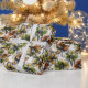 Abstract flowers in pen and ink with alcohol washes of burnt orange, avocado green, and mustard yellow decorate this gift wrap. AI-generated by IveyCottage.