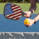 Abstract American USA Flag, Custom Text Name Pickleball Paddle