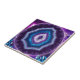 This stunning tile features a high-resolution image of a natural amethyst geode slice, showcasing its intricate crystal formations and vibrant purple, blue, and white hues.