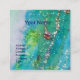 ABSTRACT AQUA BLUE TEAL GOLD SPARKLES,RED WAX SEAL SQUARE BUSINESS CARD
