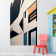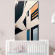 Precise lines and blocks of colour form a composition reminiscent of futuristic urban façades. A visual play between light, shadow, and perspective.