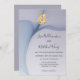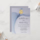This unique modern Chinese American wedding invitation features a dusty blue abstract art painting, an artistic gold double happiness symbol and bride and groom names in an elegant handwritten script.