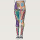 Fabulous abstract art leggings displaying various colours of purple, turquoise, orange, pink and blue.