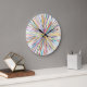 Abstract art in a multi-color burst design displays well on these wall clocks available in 2 sizes- square and round.