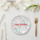 Perfect for a birthday or house decorating party with an abstract pattern of paint splashes and spots. Includes the text 'Happy Birthday' which is easily personalised for any occasion. This speckled design can be customised with any background colour too.