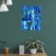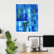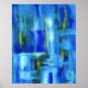 Abstract Art Painting Blue Green Gold Brushstrokes Poster